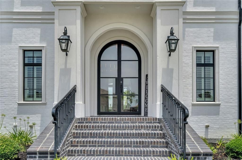 An offering of matchless appeal in The Moorings, this custom-built, resort-style waterfront showpiece rests on two large lots, delivering commanding views and an elevated standard of design for those who want lake living without compromise. Since its last sale, additional attic space has been finished out, adding even more room to spread out in comfort and style. Offering 6 bedrooms, 4.5 baths, approximately 5,388 living sq ft and 6,895 total sq ft, the home stuns from the grand foyer and piano room to the sun-filled interiors framed by floor-to-ceiling windows overlooking the water. Custom marble flooring sets the tone, complemented by designer chandeliers and fixtures throughout and high-end tilework in every bathroom. The gourmet kitchen is a true centerpiece, featuring custom cabinetry and a dramatic Cristallo Quartzite waterfall island with back-lit counters?equal parts art and function?along with a formal dining room and wet bar designed for effortless entertaining. Outdoors, the experience becomes pure resort: a large pool and hot tub with fire features, an expansive covered porch/patio, and a custom outdoor kitchen with fireplace and wet bar. Complete with private dock and boat lift, easy lake access from your backyard, a commercial-grade children's play area, and close proximity to the golf course?this is the kind of waterfront property buyers wait for.