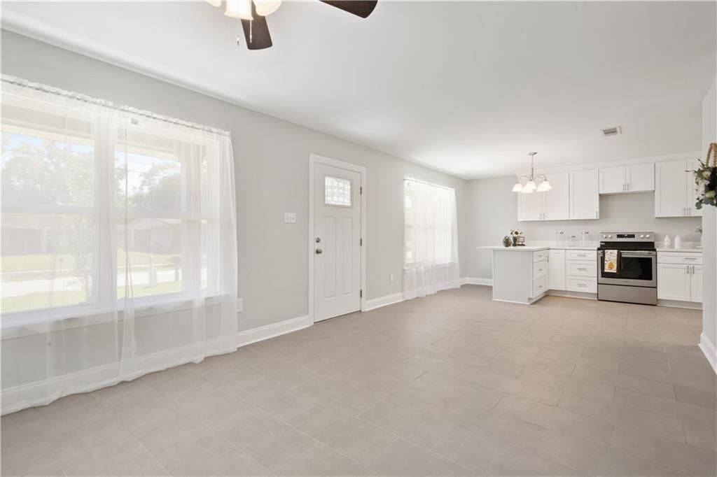 *** Qualifies for 100% FINANCING & FREE $5k grant toward closing costs, and NO PMI ? which lowers your monthly note! *** Awesome renovation! Tons of living area; versatile floorplan. Neat as a pin & ready to move in! Updates include almost new shaker style kitchen cabinets with crown molding; quartz counters which includes a nice peninsula with bar seating; stainless appliances;. Fully renovated primary bathroom; new tub with nice ceramic tile surround with door leading to laundry area and 337 sq ft potential fourth bedroom or game room. New vanities and quartz counters in both bathrooms. NO CARPET & Double Insulated Windows. You'll enjoy the outdoor space with your 125 sq ft covered back porch. Privacy fenced yard; complete with storage shed and large separate future workshop! Seller to give $2000 allowance at act of sale if included in an acceptable offer for buyer to add future closet/etc for fourth bedroom.